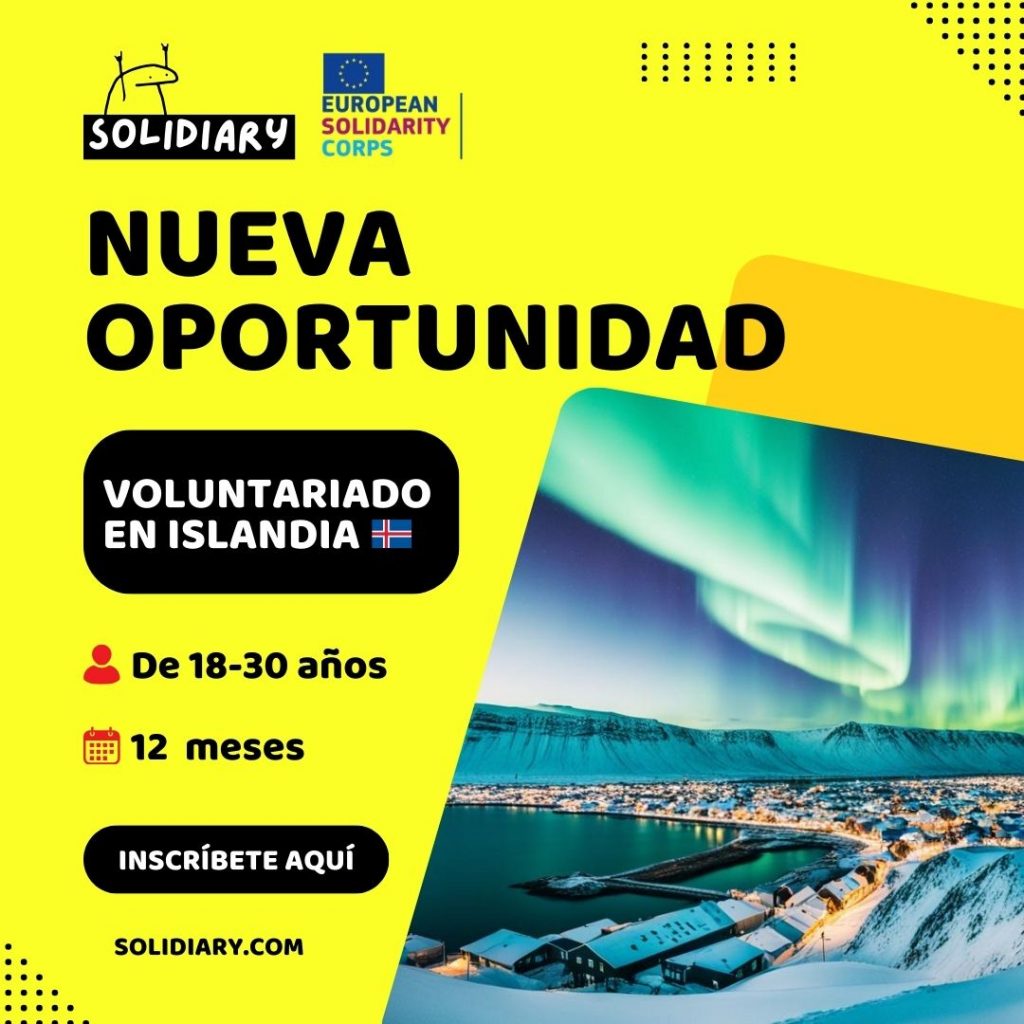NUEVA OFERTA DE VOLUNTARIADO CES EN REIKIAVIK, ISLANDIA Oferta para residentes en España De 18-30 años Voluntariado de 12 meses Plazo de inscripción: 29 de noviembre de 2024 Temática: Integración social y apoyo a personas con problemas de salud mental.